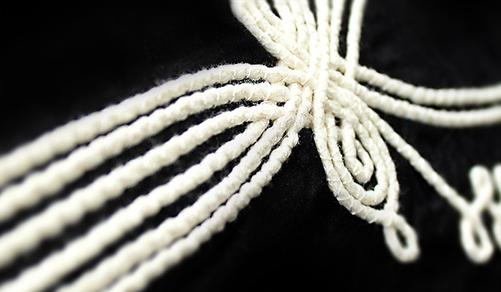 Bordado bastante atractivo, pois o seu relevo combina na perfeição quando conjugado com tipo de pontos tradicionais.